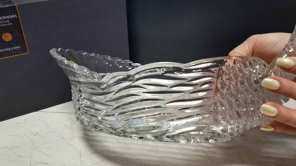 Блюдо хрустальное Богемия Индюк 31,5 см