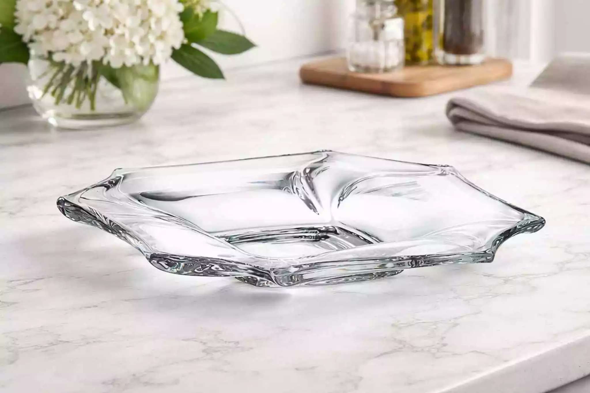 Изготовленное из экологически чистого хрусталя, блюдо отличается особой прозрачностью, сиянием и благородной толщиной стекла. Оно не содержит свинца, безопасно в использовании и подчёркивает современный подход к сервировке.