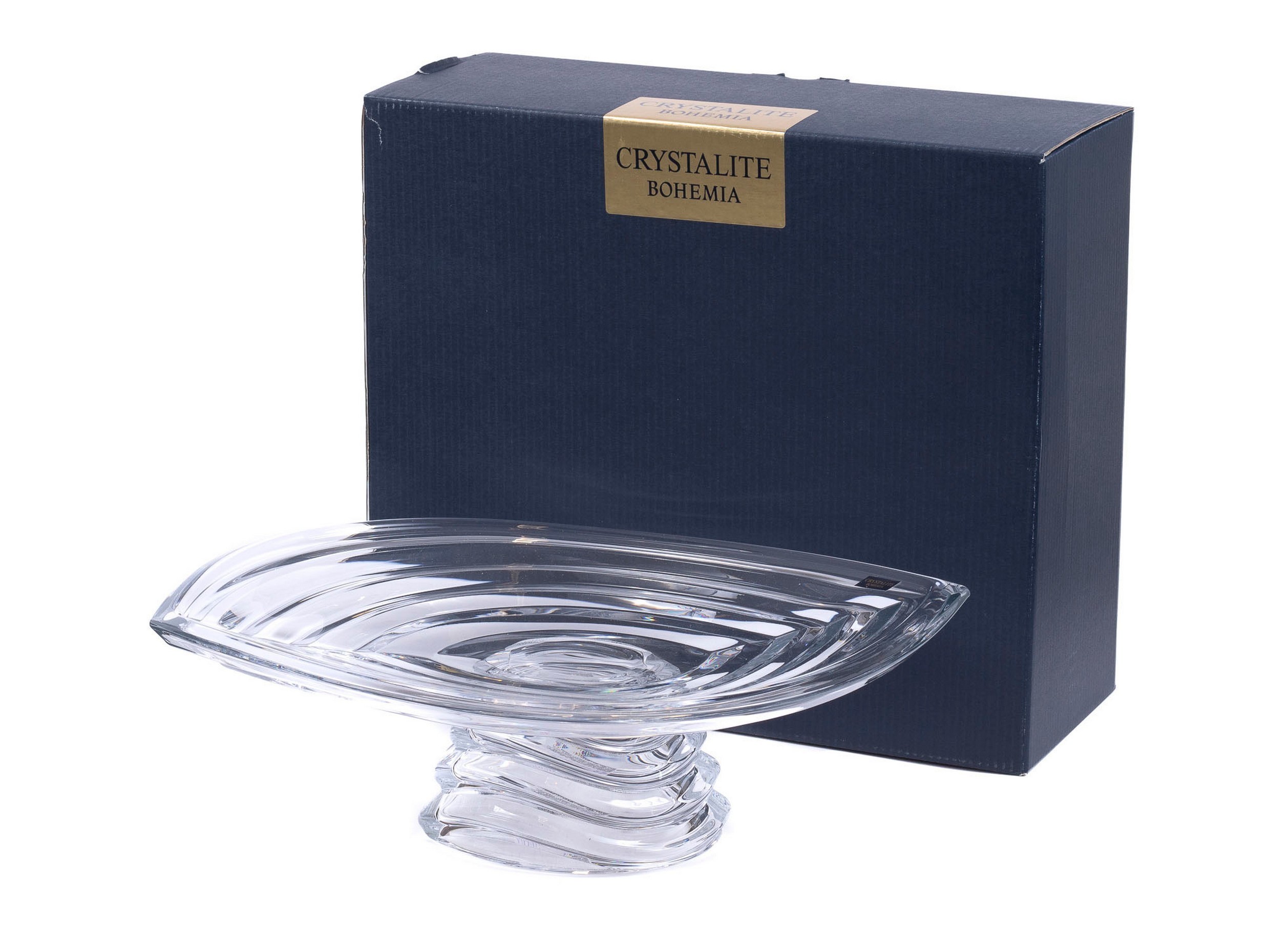 Оригинальное блюдо на ножке для торта и десертов чешского бренда Bohemia MiG Kristal, эксклюзивная коллекция Волна Отличный подарок подруге и маме а также такая посуда отлично станет акцентом на праздничном столе. Истинные ценители высококачественной посуды из хрусталя и богемского стекла наверняка знакомы с торговой маркой Bohemia, являющейся одним из старейших чешских производителей стекла. Богемские бокалы пользуются огромной популярностью и высоко ценятся не только за красоту форм и разнообразие декора, но и за экологически чистые материалы, прочность и долговечность. Производство хрусталя и богемского стекла осуществляется по новейшим технологиям под руководством старинных чешских традиций, что позволяет добиться самого высокого качества.