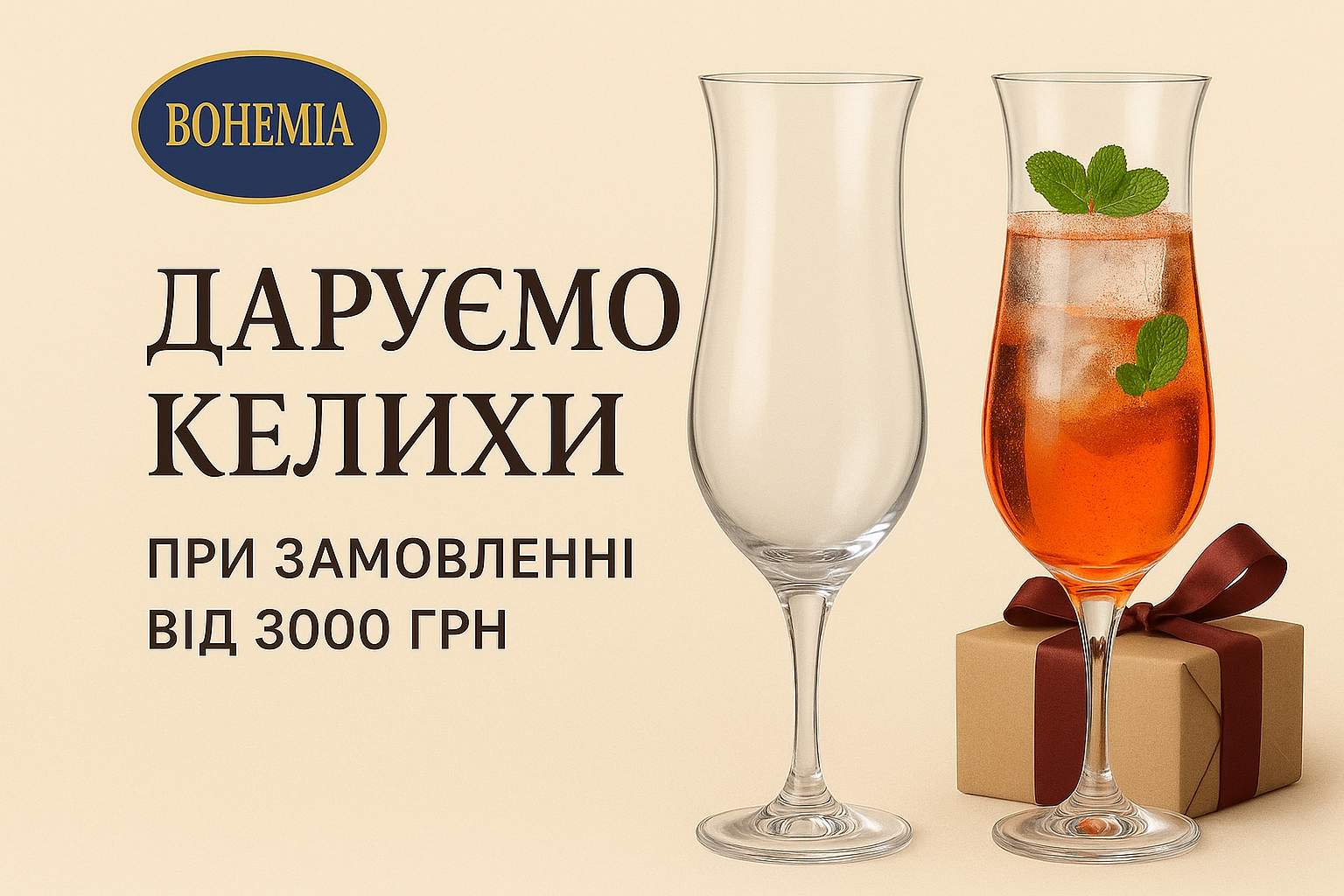 Дарим бокалы при заказе от 3000 грн (Акция завершена)