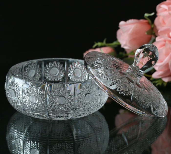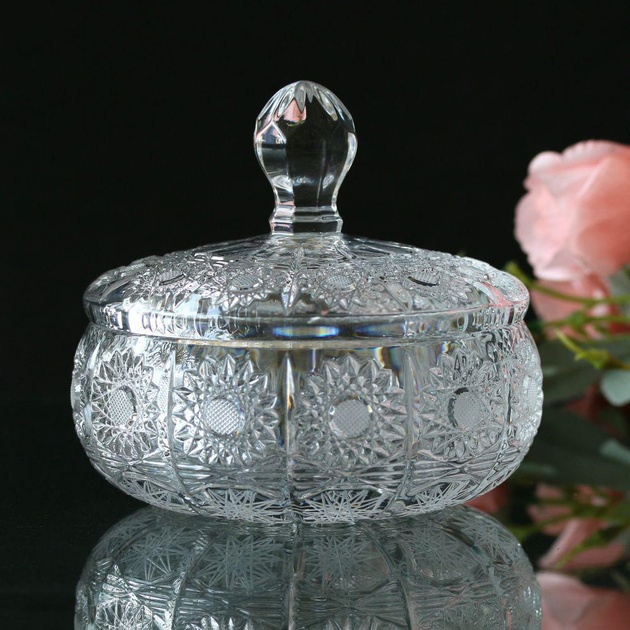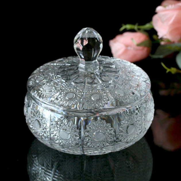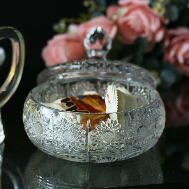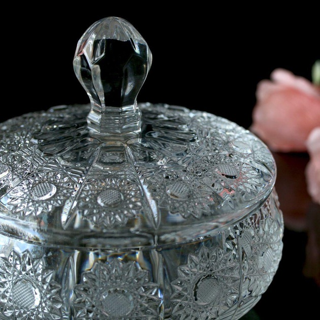 Удобная конфетница с крышкой позволит красиво подать сладости к праздничному столу. Богемский хрусталь отличается особым и неповторимым стилем. Классический хрусталь содержит 24% свинца и представляет собой интересный материал по самой своей сути. Благодаря своим механическим и физическим свойствам хрусталь прочен, но достаточно мягок, чтобы позволить декораторам украсить его резными узорами, которые еще больше подчеркивают красоту данного материала. Компания Crystal Bohemia продолжает вековые традиции гранения хрусталя. Фабрика является ведущим поставщиком в мире. Ее кредо - продукция должна быть полезной, красивой и стильной. Посуда серии Classic имеет традиционные формы, украшенные солярными символами, а по краям - ломаной линией.
