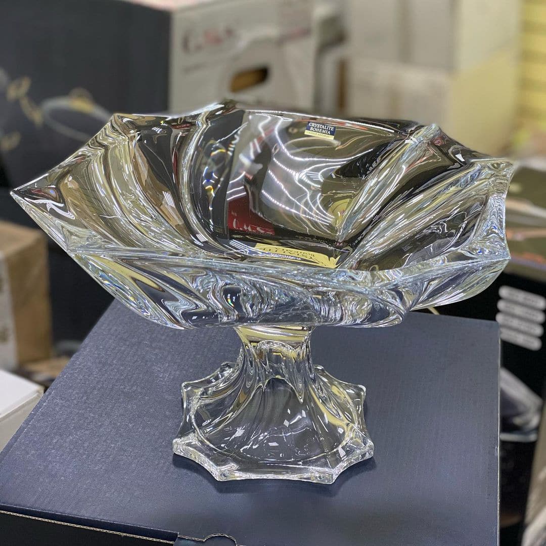 Фруктовница на ножке из коллекции Bohemia "Neptune" высотой 25,5 см изготовлена из прозрачного экохрусталя — современного безсвинцового материала с высокой прочностью и блеском. Элегантная форма с волнообразными линиями придаёт изделию выразительный внешний вид и делает его стильным акцентом на любом столе.