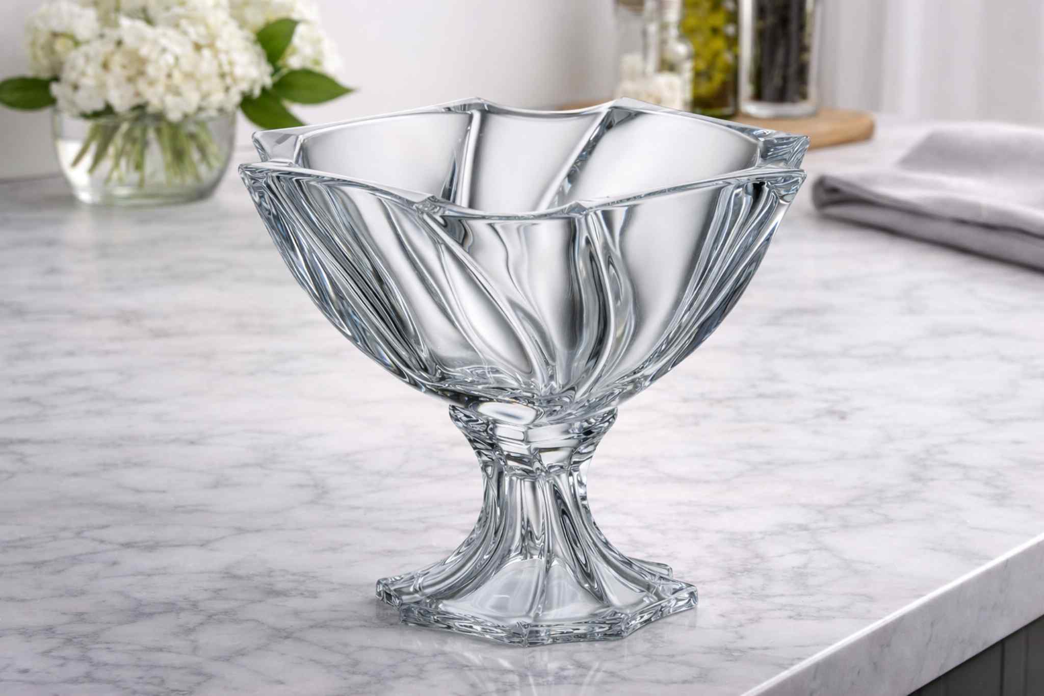 Идеально подходит для подачи фруктов, десертов или сладостей, подчеркивая эстетику сервировки и изысканность интерьера.