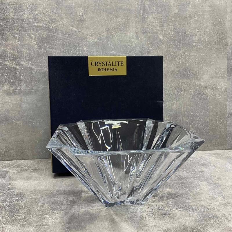Коллекция Bohemia Metropolitan создана для ценителей выразительного дизайна и строгой элегантности. Все изделия в этой серии — от ваз до сервировочных блюд — выполнены из прозрачного хрусталя с геометрическим рельефом. Многогранные грани и чёткие линии придают формам архитектурную чёткость и делают их визуально привлекательными с любого ракурса.