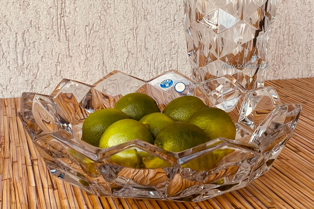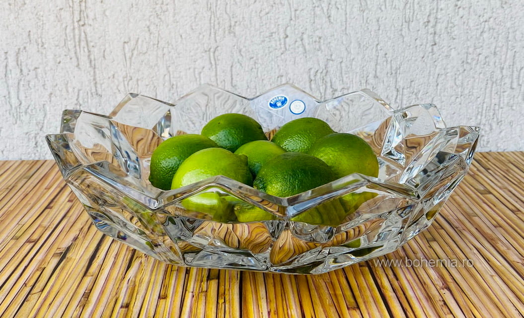 Обладает фигурными стенками с волнистыми краями и уплотненным дном. Благодаря неординарной форме ваза для фруктов будет сверкать яркими отблесками.
