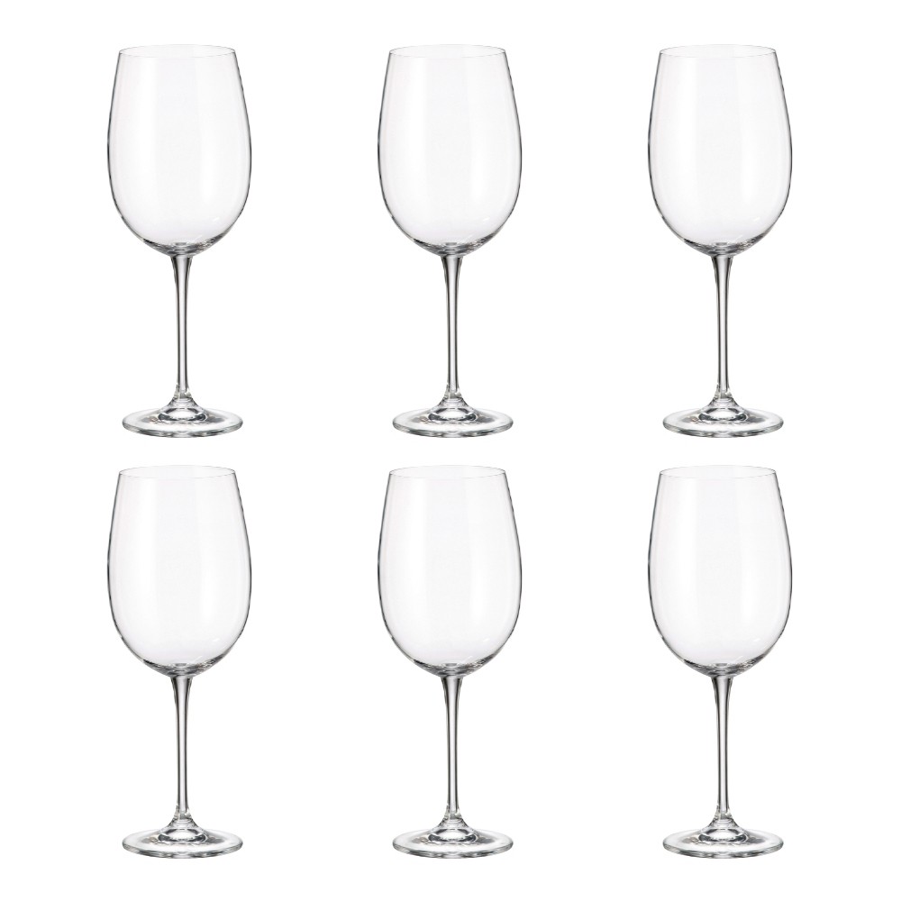 Бокалы для вина из выдувного богемского  стекла объемом 640 мл. Удобная широкая чаша, зауженная к верху, позволяет наиболее полно раскрывать аромат напитка благодаря увеличенному контакту с воздухом. Изделие дополнено высокой тонкой ножкой и устойчивым основанием, которые подчеркивают стиль и элегантность. Дополнительный обжиг края и окиси титана в составе стекла гарантируют прочность и восхитительный блеск.