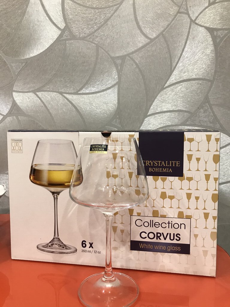 Набор бокалов для вина Corvus от чешского производителя  изготовлен из богемского стекла.Его оценят любители современной эстетики сервировки стола. Для изготовления рюмок используется выдувное богемское хрустальное стекло высшего качества. Оно имеет чистый бриллиантовый блеск и высокую прозрачность. Лаконичный дизайн без декора. Изделия имеют повышенную прочностьза счет дополнительного обжига края и наличия титана в составе.