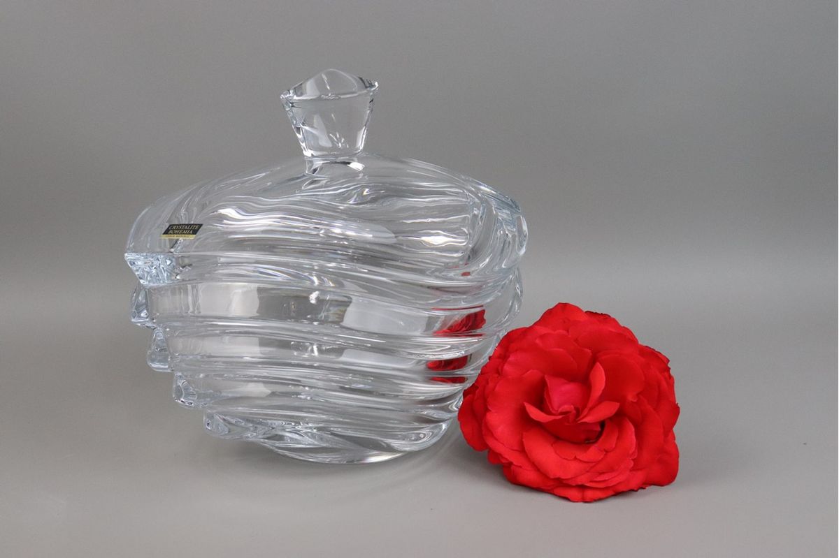 Ваза с крышкой Bohemia Wave из хрусталя - шикарный и дорогой элемент элегантного интерьера, изготовлена профессиональными мастерами, которые славятся на весь мир. Необычный дизайн придает шика и класса интерьеру. Такая ваза порадует по-настоящему близких людей. Bohemia MiG Kristal, эксклюзивная коллекция Волна Отличный подарок подруге и маме а также такая посуда отлично станет акцентом на праздничном столе. Истинные ценители высококачественной посуды из хрусталя и богемского стекла наверняка знакомы с торговой маркой Bohemia, являющейся одним из старейших чешских производителей стекла. Богемские бокалы пользуются огромной популярностью и высоко ценятся не только за красоту форм и разнообразие декора, но и за экологически чистые материалы, прочность и долговечность. Производство хрусталя и богемского стекла осуществляется по новейшим технологиям под руководством старинных чешских традиций, что позволяет добиться самого высокого качества.