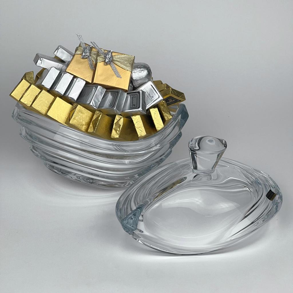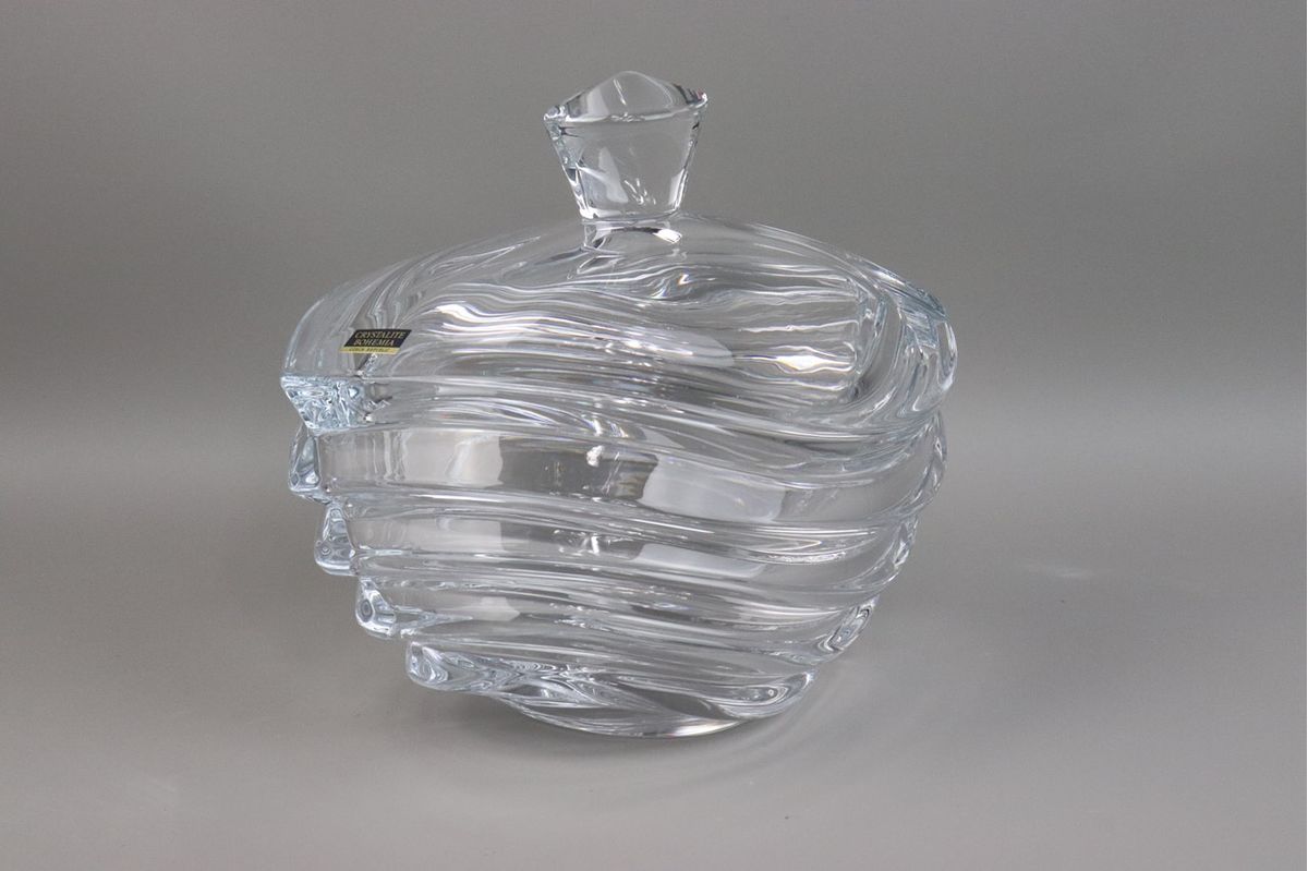 Хрустальная конфетница с крышкой Wave Богемия 22 см