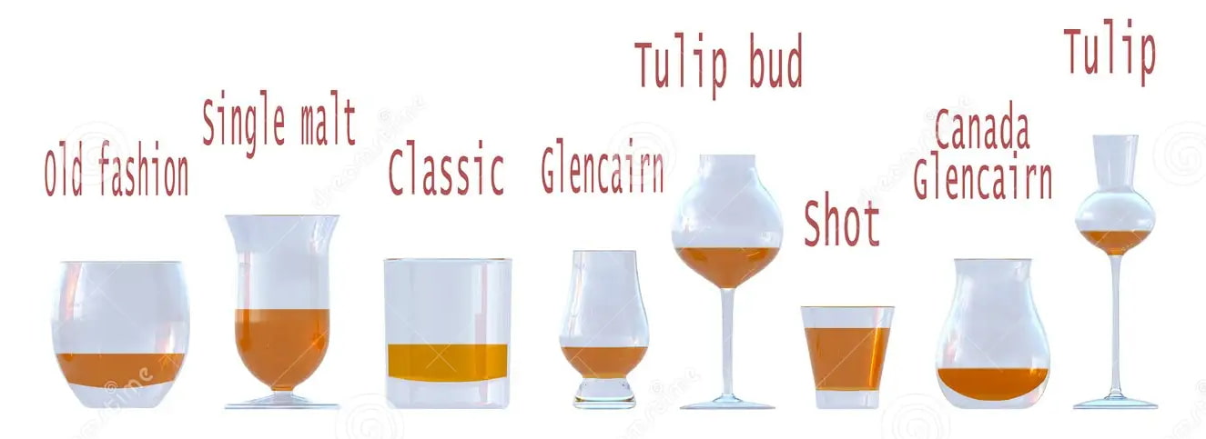 Стаканы для виски должны обладать определенной формой, размером, благодаря которым раскрываются особенности разных сортов, независимо от того, используются они повседневно или при особых случаях.