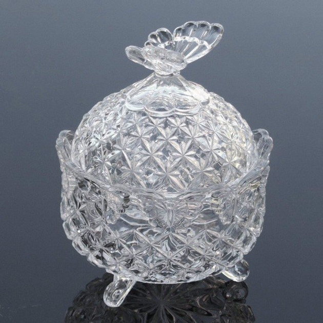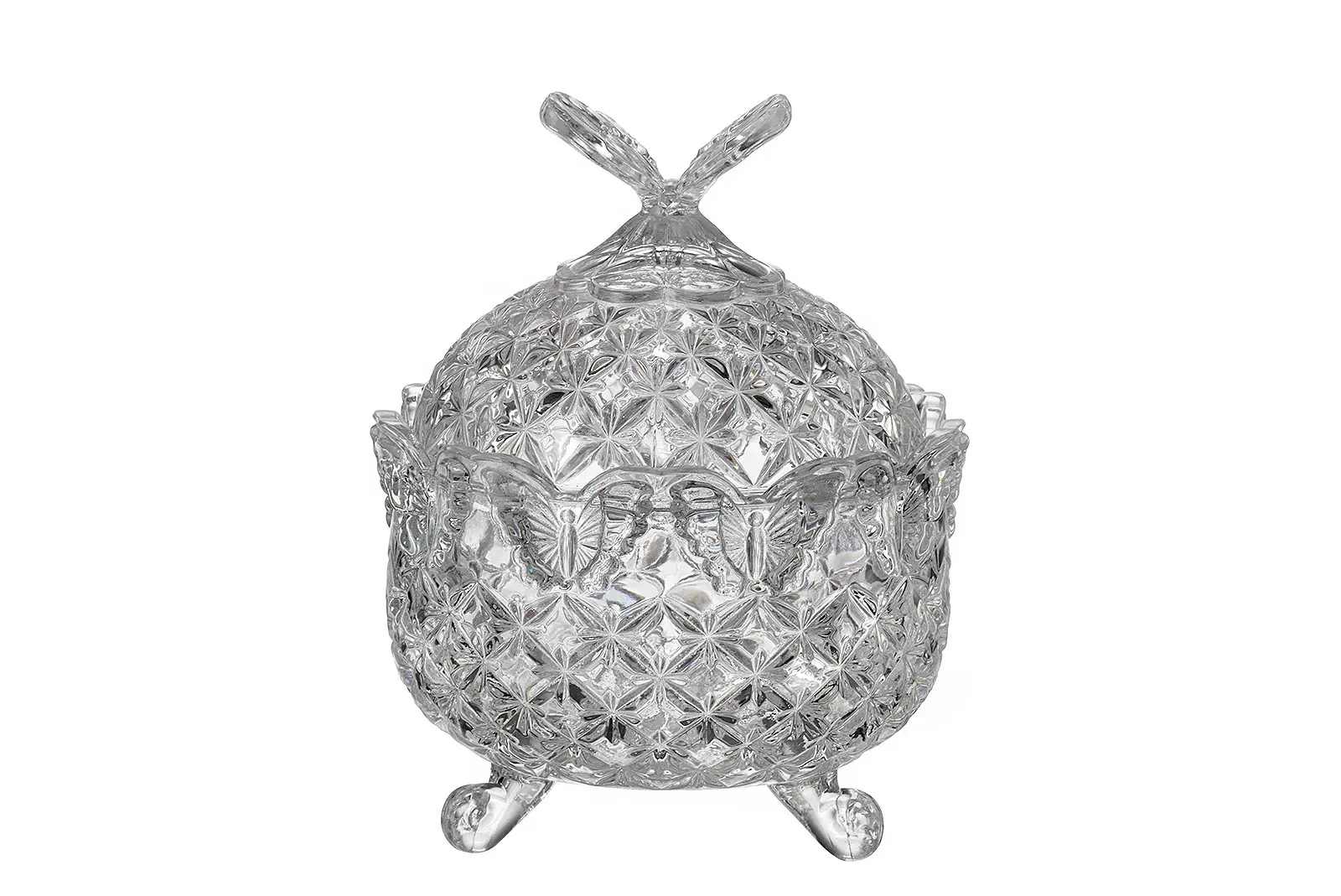 Конфетница экохрусталь прозрачного цвета с крышкой Bohemia Papillon 20 см
