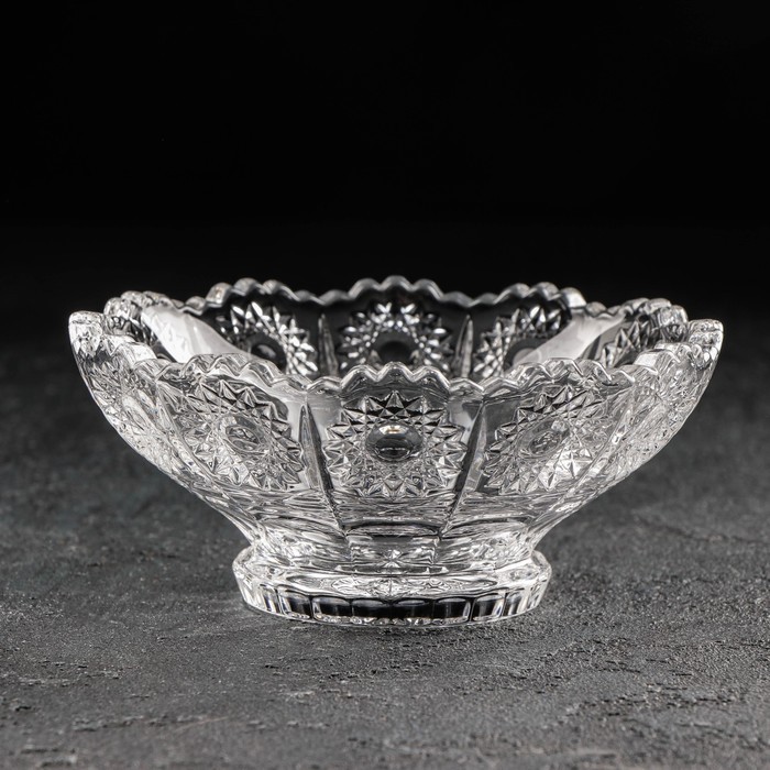 Удобное блюдопозволит красиво подать конфеты к столу. Небольшая широкая ножка приподнимает зрительно блюдо над столом, делая на нем акцент. Богемский хрусталь отличается особым и неповторимым стилем. Классический хрусталь содержит 24% свинца и представляет собой интересный материал по самой своей сути. Благодаря своим механическим и физическим свойствам хрусталь прочен, но достаточно мягок, чтобы позволить декораторам украсить его резными узорами, которые еще больше подчеркивают красоту данного материала. Компания Crystal Bohemia продолжает вековые традиции гранения хрусталя. Фабрика является ведущим поставщиком в мире. Ее кредо - продукция должна быть полезной, красивой и стильной. Посуда серии Classic имеет традиционные формы, украшенные солярными символами, а по краям - ломаной линией.