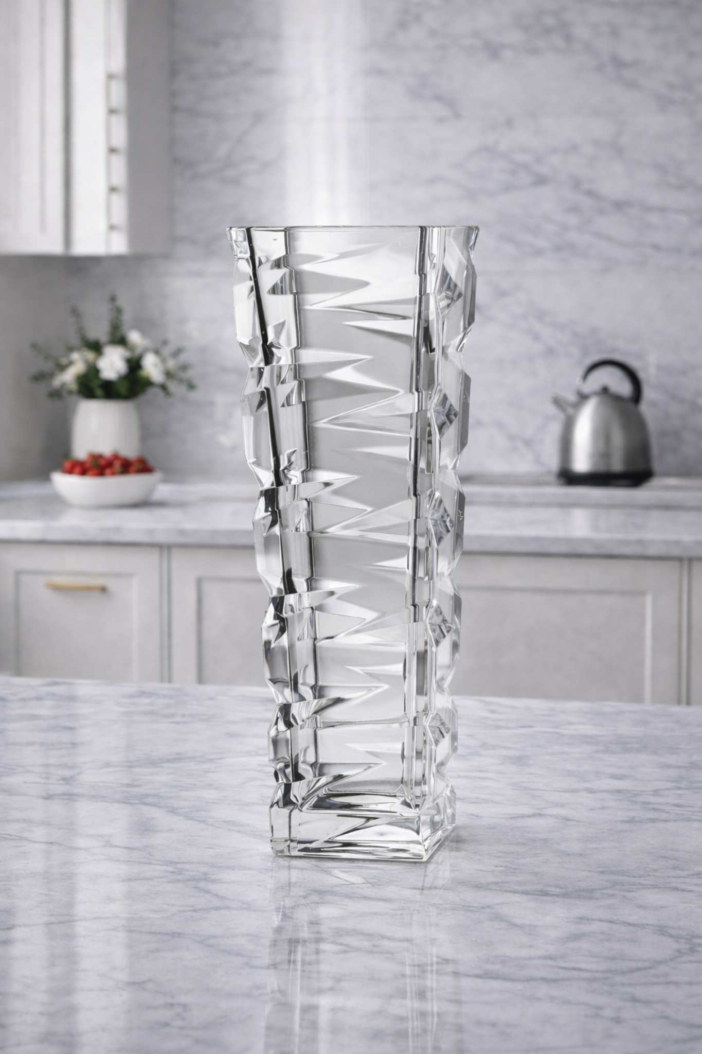 Ваза изготовлена из высококачественного хрусталя, который славится своей прозрачностью, прочностью и чистым звоном. Она станет центральным элементом декора в гостиной, столовой или кабинете, подчеркивая изысканный вкус хозяев дома. Подходит как для срезанных цветов, так и как самостоятельный декоративный объект.