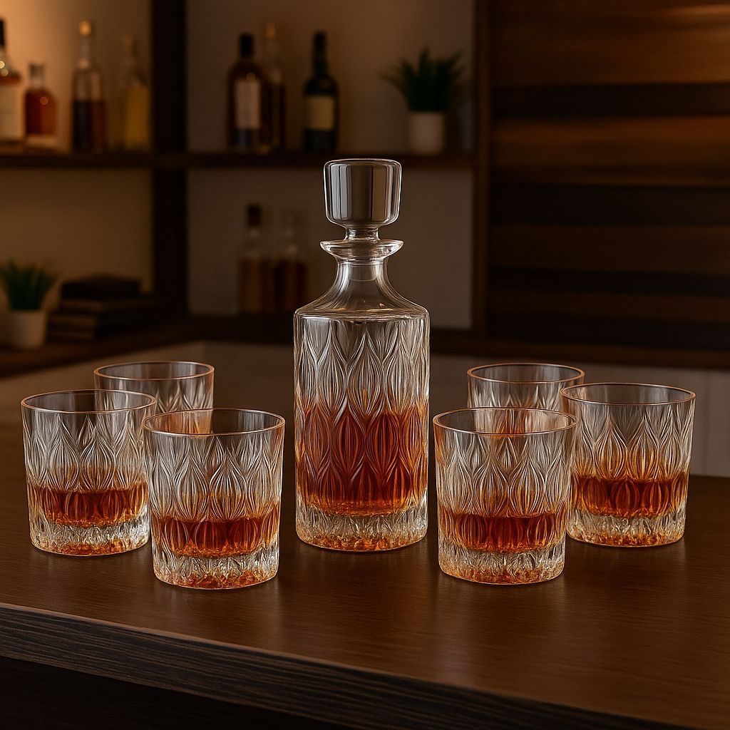 В набор входят штоф и шесть стаканов, идеально подходящих для подачи виски, бурбона или других крепких напитков. Экохрусталь отличается высокой прочностью и безопасностью, что делает этот комплект прекрасным выбором как для ежедневного использования, так и для особых случаев.