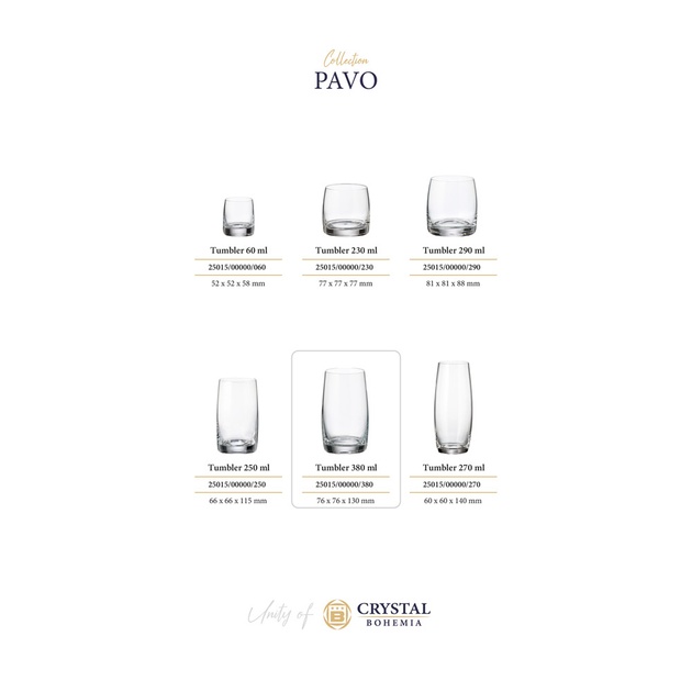 Объём 380 мл обеспечивает достаточное количество напитка, чтобы утолить жажду, и делает стаканы идеальными для подачи воды, соков, смузи, коктейлей и прохладительных напитков. Удобная цилиндрическая форма с лёгким сужением к основанию позволяет комфортно держать стакан в руке, а утолщённое дно гарантирует устойчивость и надёжность на любой поверхности.