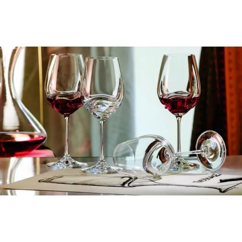 Бокалы изготовлены из высококачественного богемского стекла, известного своей прозрачностью, прочностью и изяществом. Легкость и сбалансированность форм создают идеальные условия для подачи красного и белого вина. Тонкая ножка и утончённый ободок придают эстетике набора особую элегантность, превращая трапезу в гастрономический ритуал.