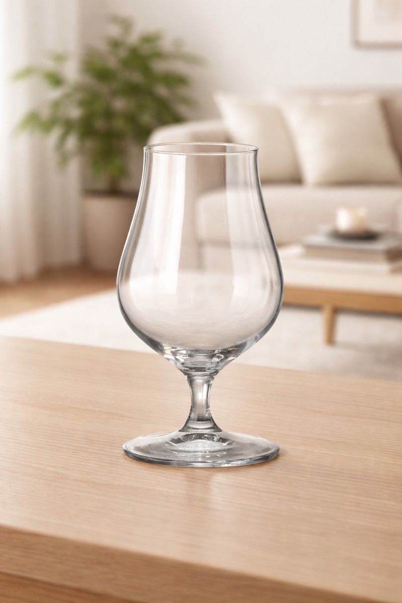 Форма бокала выполнена в современном тюльпановидном стиле: широкая чаша позволяет пиву «дышать» и насыщаться кислородом, а сужающееся горлышко сохраняет пену и концентрирует аромат. Такое решение превращает дегустацию в эстетическое наслаждение, подчёркивая не только вкус, но и культуру потребления. Бокал идеально ложится в руку и создаёт ощущение лёгкости и утончённости.