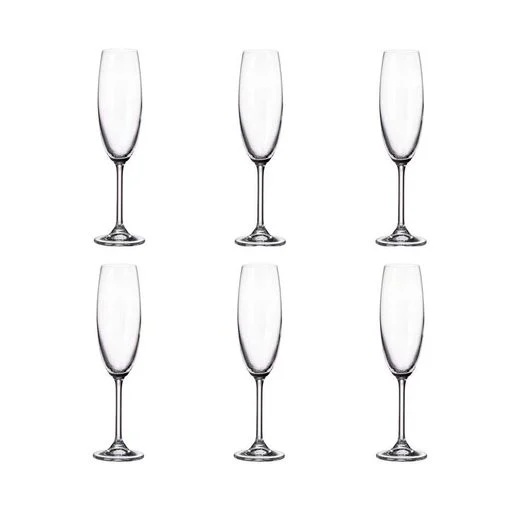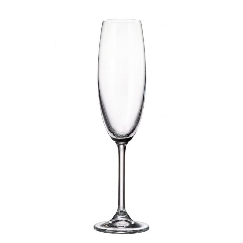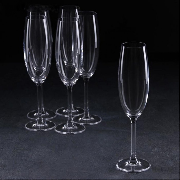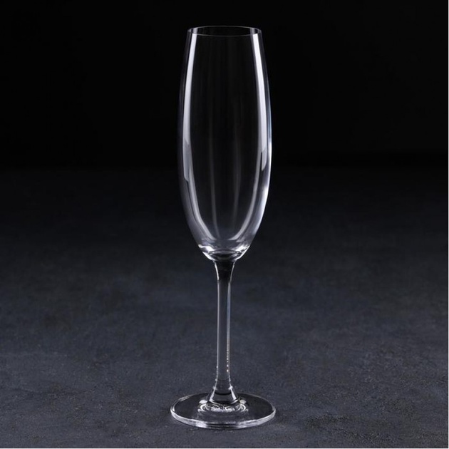 Объем каждого бокала составляет 220 мл – это оптимально для подачи игристых вин и шампанского. Тонкое, но прочное богемское стекло обеспечивает приятную легкость в руке, а отсутствие декора делает этот набор универсальным: он будет уместен как на праздничном столе, так и на деловом приёме.