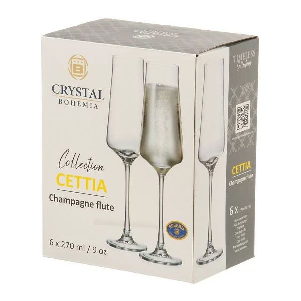 Набор бокалов для шампанского Bohemia CETTIA — это гармоничное сочетание современной геометрии и традиционного качества богемского стекла. Новая модель выполнена в лаконичном дизайне с подчёркнуто прямыми линиями и элегантной посадкой на высокой ножке. Прозрачное стекло подчёркивает лёгкость силуэта и открывает напитку визуальную глубину, делая каждый бокал уместным как в домашнем, так и в профессиональном сервировочном контексте.