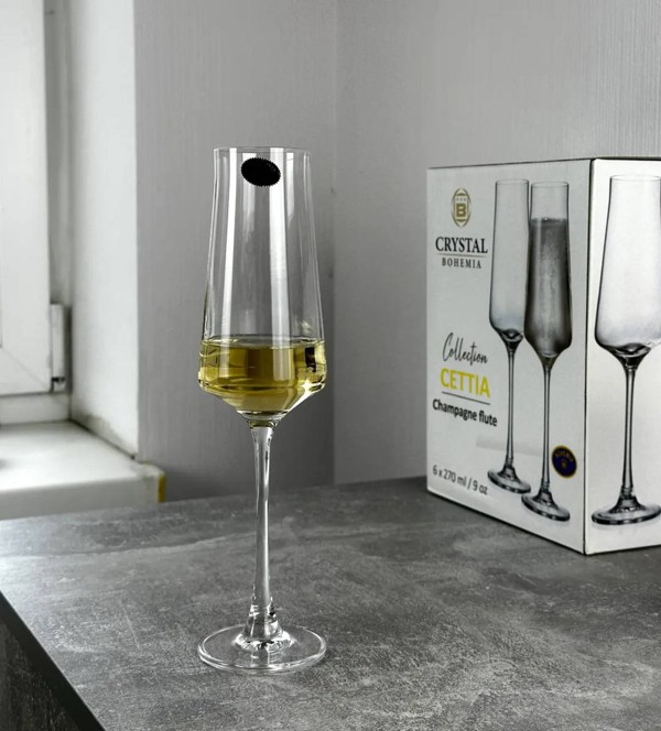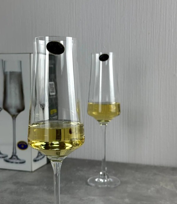 Объём каждого бокала составляет 270 мл — это увеличенный формат, который отлично подойдёт как для классического шампанского, так и для различных игристых вин. Такая вместительность позволяет лучше раскрыть аромат напитка, при этом сохраняется идеальный баланс между формой чаши и функциональностью. Узкое горлышко удерживает поток пузырьков, продлевая свежесть и насыщенность напитка до последнего глотка.