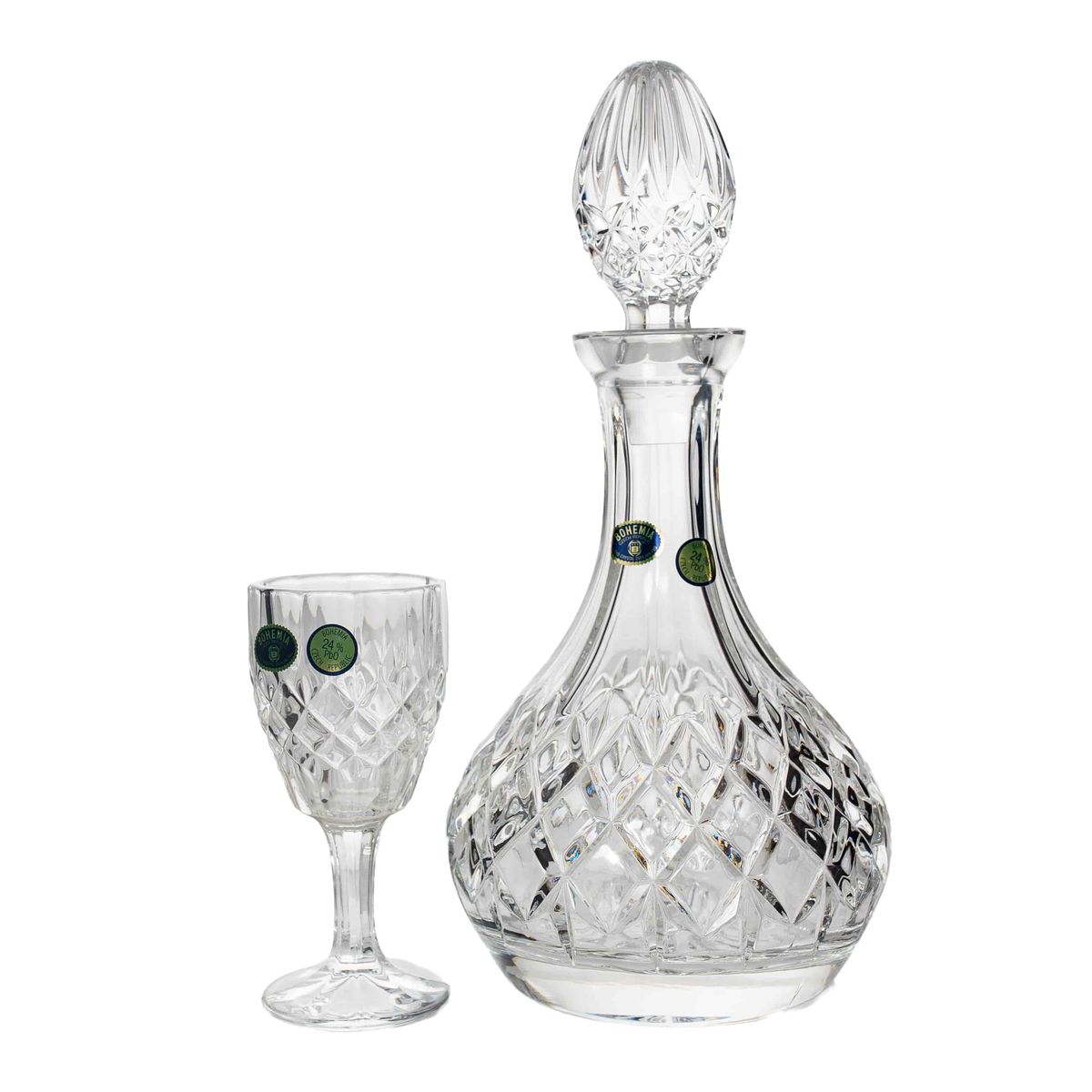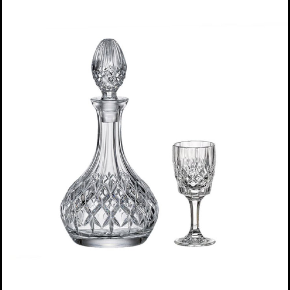 Хрустальный набор Bohemia Angela для ликера или водки — это воплощение классической элегантности и высокого стиля. Изготовленный из прозрачного чешского хрусталя, он отличается утонченным дизайном: объемный графин с изящной пробкой и шесть миниатюрных бокалов украшены глубокими алмазными гранями. Такая огранка придает стеклу выразительное сияние и делает подачу напитков по-настоящему торжественной.