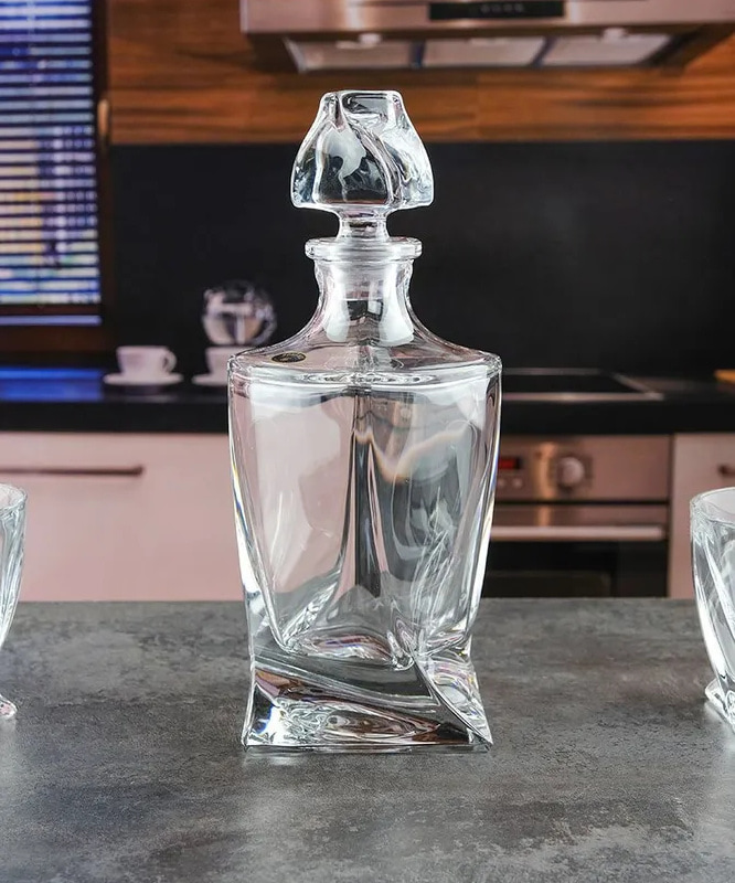 Геометрические линии и эффект легкого закручивания придают каждому элементу динамический и современный вид. Продуманная форма стаканов удобно ложится в руку, а графин с широким горлышком обеспечивает комфортную подачу напитков. Этот набор создан для тех, кто ценит особые моменты: будь то вечер в кругу друзей или важное семейное событие. Идеально ограненные грани стекла играют на свете, подчеркивая благородство вашего напитка.