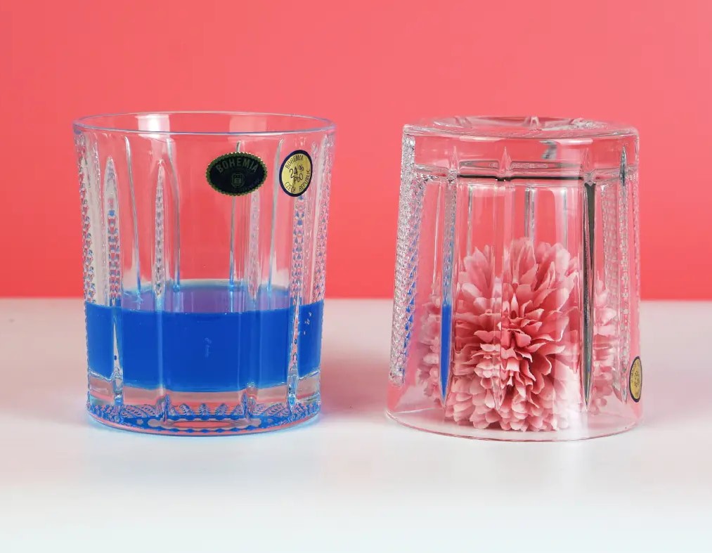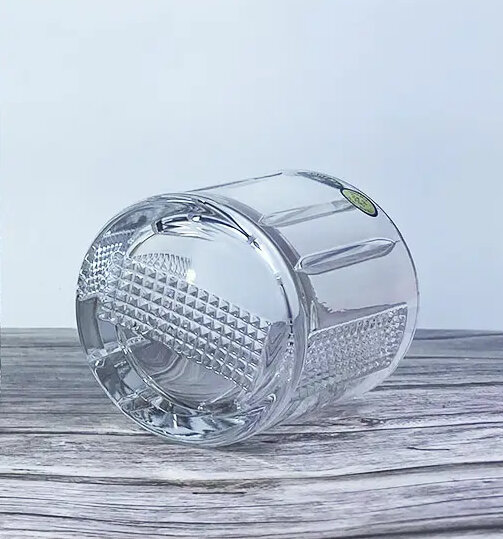 На обратной стороне стекла плотно расположенные поперечные сечения, над которыми расположены вертикальные бороздки, образующие классический традиционный узор.