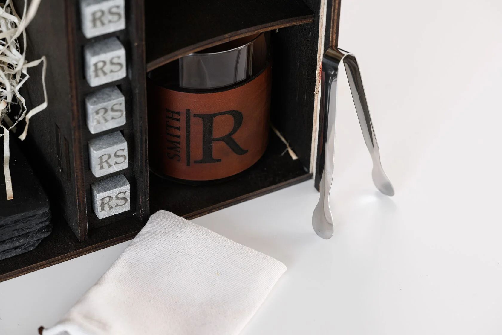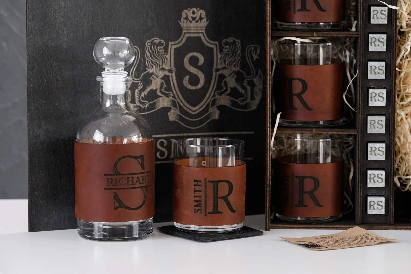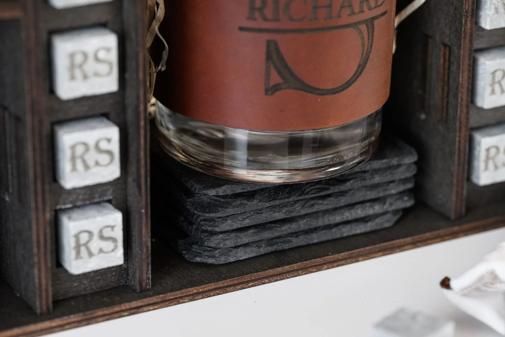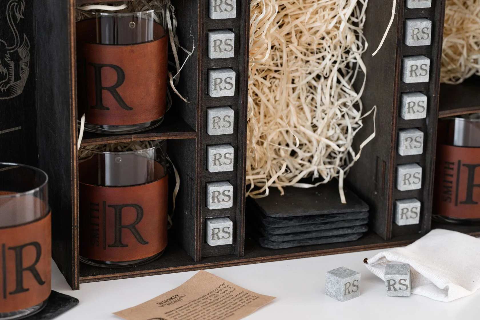 Идеальный выбор для подарка мужчине, у которого всё есть. Этот комплект — не просто функциональный, он впечатляет с первого взгляда: благородная деревянная коробка, массивный декантер, шесть бокалов в кожаных съёмных футлярах и персональные камни для охлаждения — каждая деталь говорит о вкусе, статусе и умении выбирать лучшее. Такой набор уместен и как именной подарок, и как деталь стильного интерьера домашнего бара.