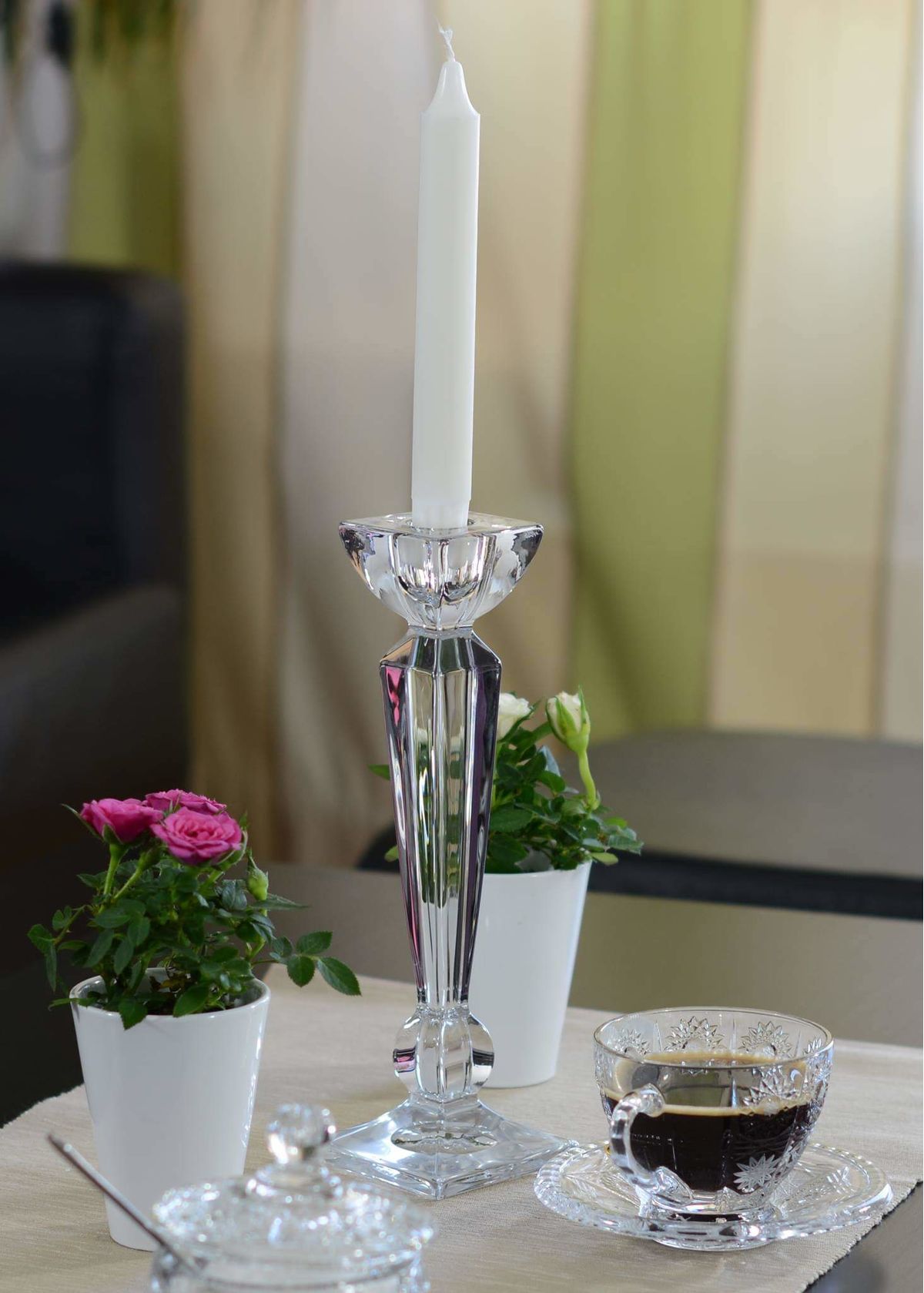 Красивый элемент декора или изящная деталь для создания романтической обстановки. Благодаря причудливым танцующим теням и мерцающему свету свечи в хрустальном подcвечнике получится создать атмосферу таинственности.