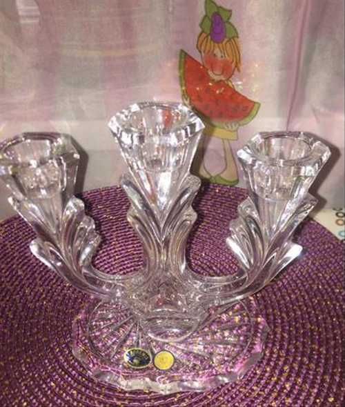 Подсвечник хрустальный 3-х рожковый Богемия h-16,5 см