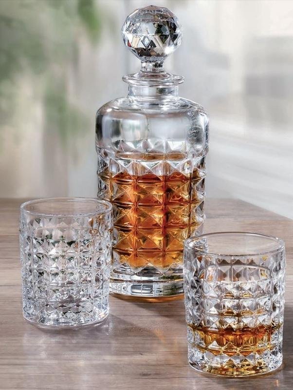Все изделия выполнены из прочного и кристально чистого стекла, благодаря которому каждая грань сияет в отражении света. Это посуда с характером — она выглядит массивной, увесистой, подчёркивает статус и стиль. При этом универсальность форм делает её подходящей как для ежедневного использования, так и для праздничной сервировки.