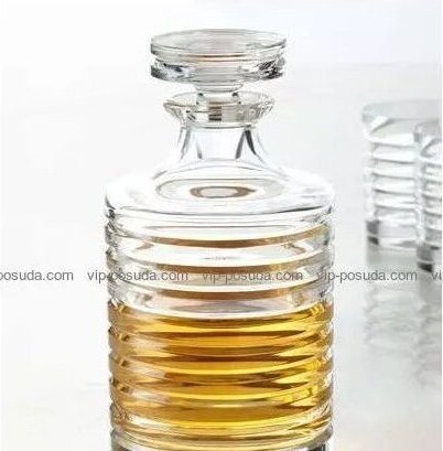 Горизонтальные грани придают изделию современную динамику, а крышка плотно фиксируется, что делает штоф не только стильным, но и практичным аксессуаром. Это идеальный выбор для подачи виски, бренди, ликёра или наливок. Его форма подчёркивает благородство напитка и завершает общую композицию сервировки стола.