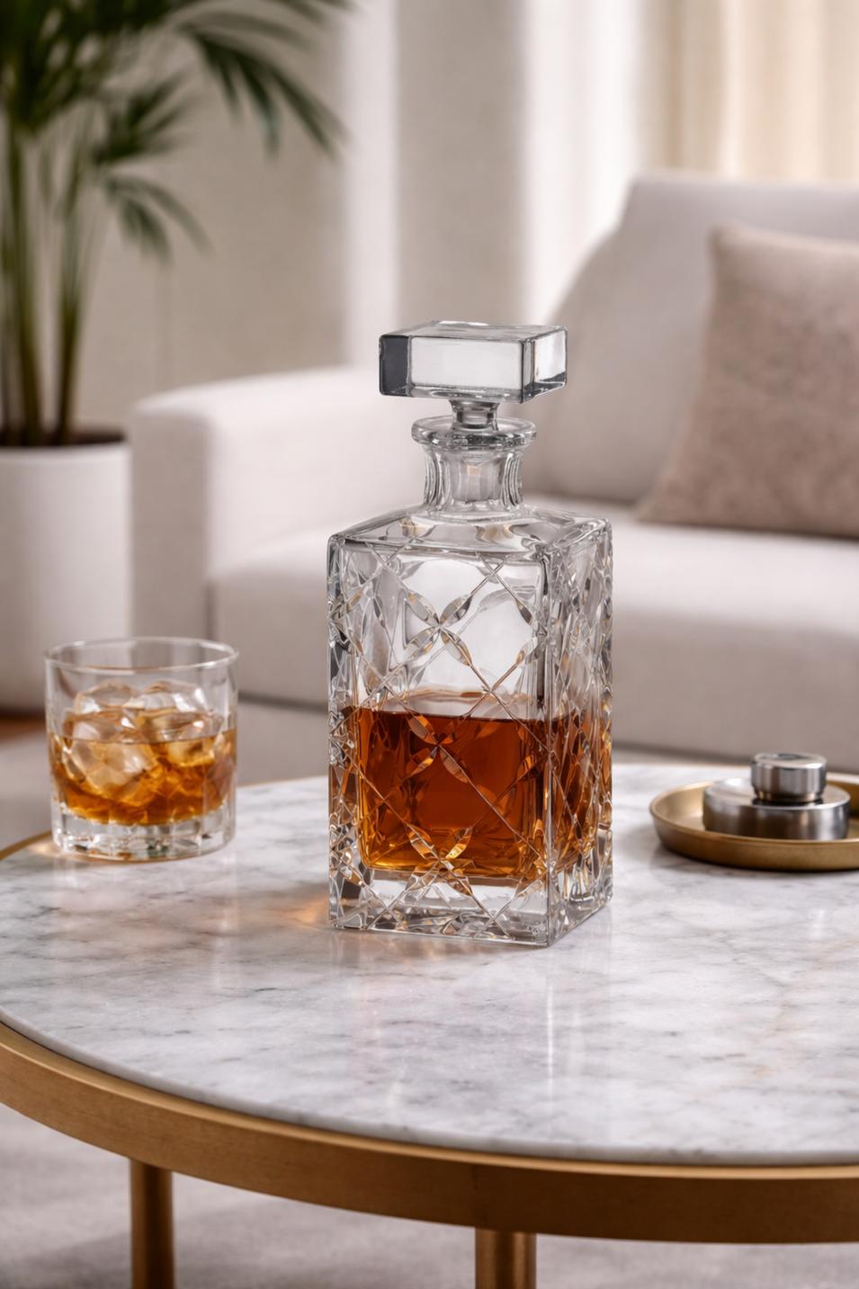 Это не просто графин — это акцент, который говорит о вкусе, статусе и внимании к деталям. Он прекрасно подойдёт для домашнего бара, в качестве подарка мужчине или как стильное украшение интерьера.