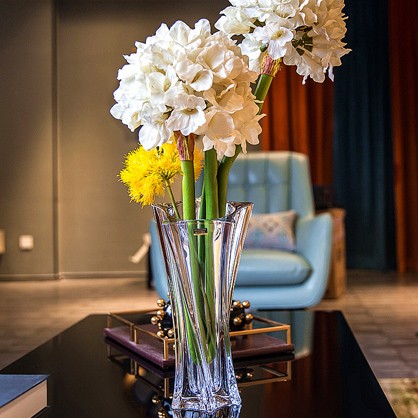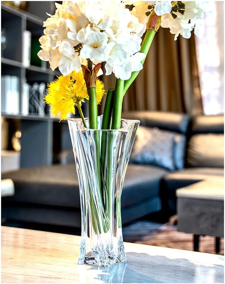 Bohemia Yoko 33 см – высокая стеклянная ваза из коллекции современного чешского дизайна. Четкие линии, плавная асимметрия и прозрачное чешское стекло придают весу современный, универсальный стиль.