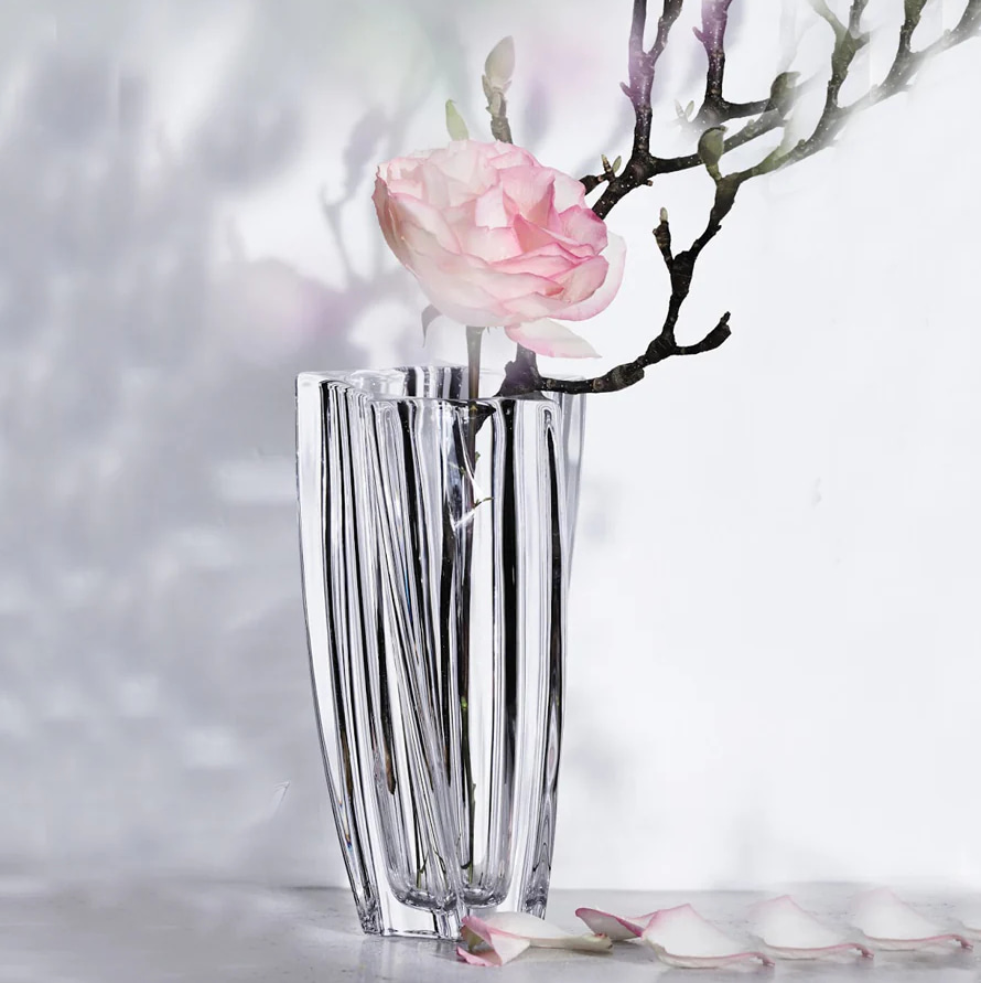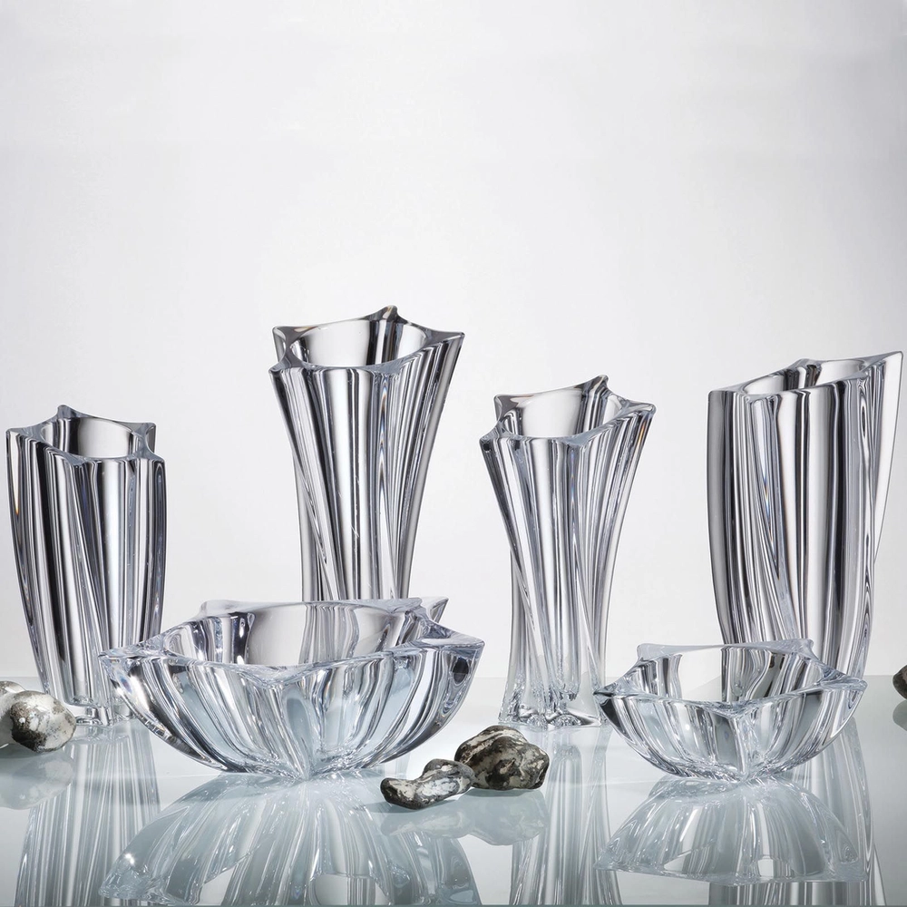 Bohemia Yoko 30.5 см — элегантная стеклянная ваза, созданная в духе современного чешского дизайна. Её форма сочетает чёткие вертикали и плавную асимметрию, благодаря чему она выглядит свежо и легко вписывается в классические и минималистичные интерьеры.