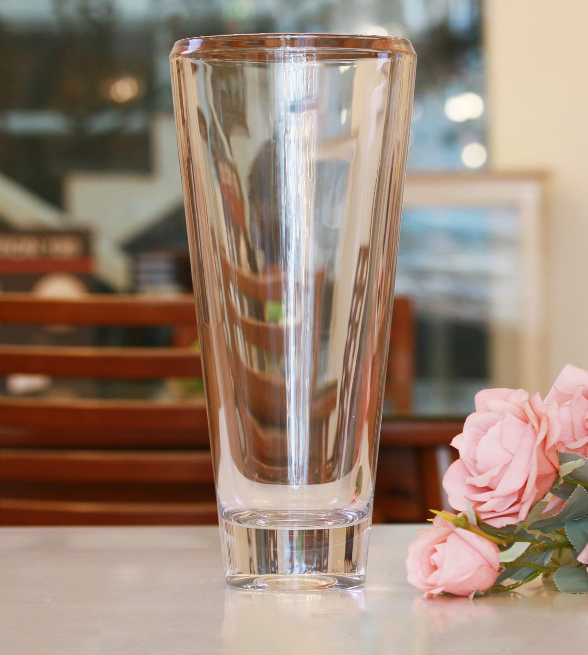 Эта высокая ваза из коллекции Campos притягивает взгляд строгими линиями и безупречными пропорциями. Её гранёная форма напоминает современный небоскрёб из стекла — устойчивая, выразительная, наполненная светом. Высота 35 см делает вазу идеальной для длинных стеблей, веток и масштабных композиций.