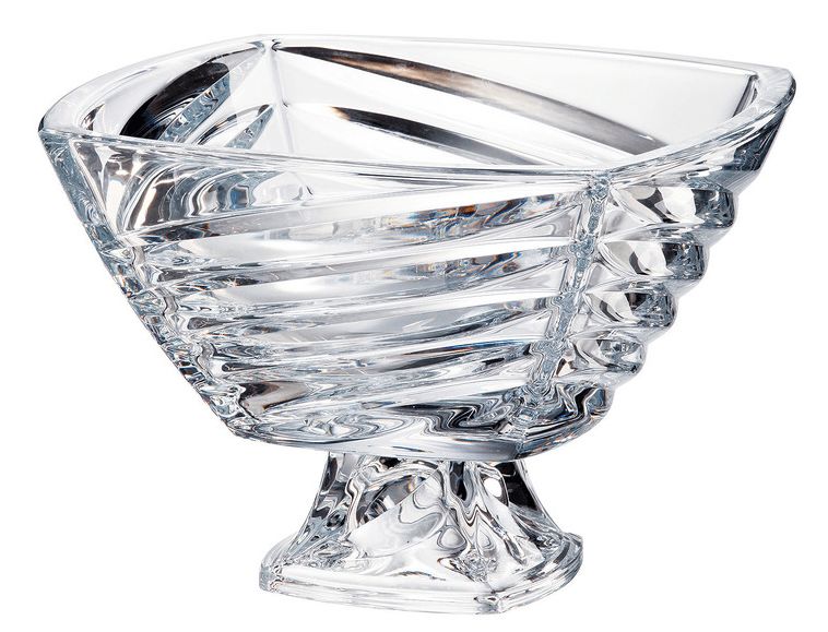 Ваза для фруктов на ножке Bohemia "Facet" 33 см — эффектное и практичное украшение сервировки, выполненное из высококачественного богемского стекла. Её рельефная поверхность с выразительными диагональными линиями придаёт форме динамику и объём, а прозрачность материала подчёркивает свежесть фруктов и изысканность подачи.