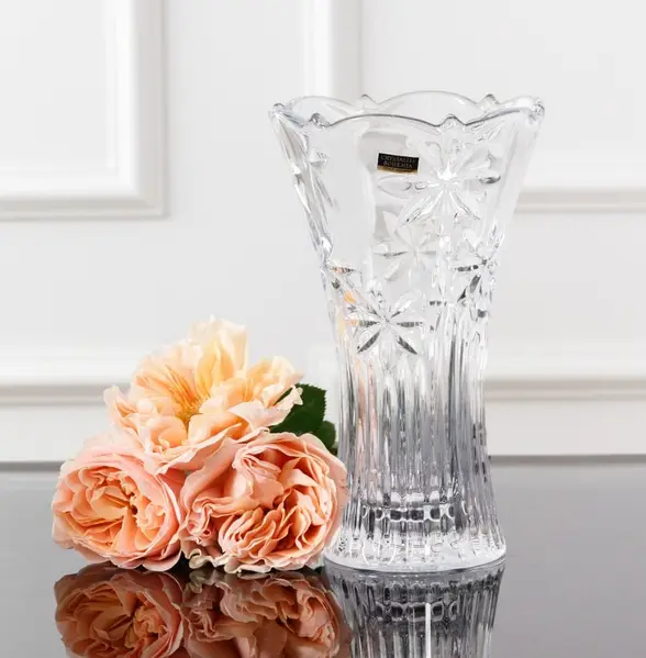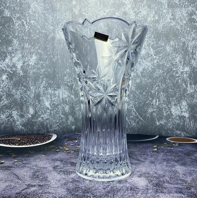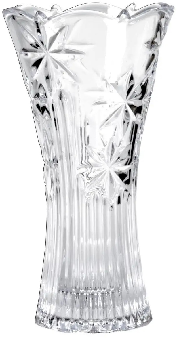 Ваза для цветов Bohemia Perseus высотой 25 см выполнена из прозрачного чешского стекла с декоративной огранкой. Модель имеет устойчивую форму, которая подходит для размещения как небольших, так и средних букетов. Рисунок на поверхности выполнен в классическом стиле с геометрическим орнаментом, характерным для изделий бренда Bohemia.