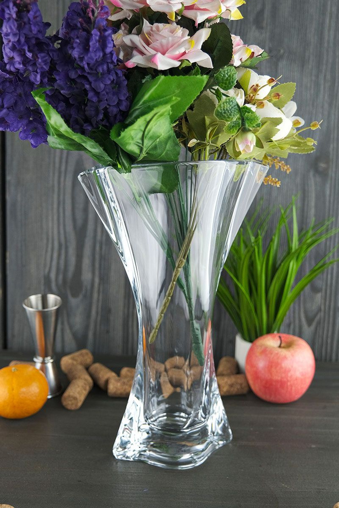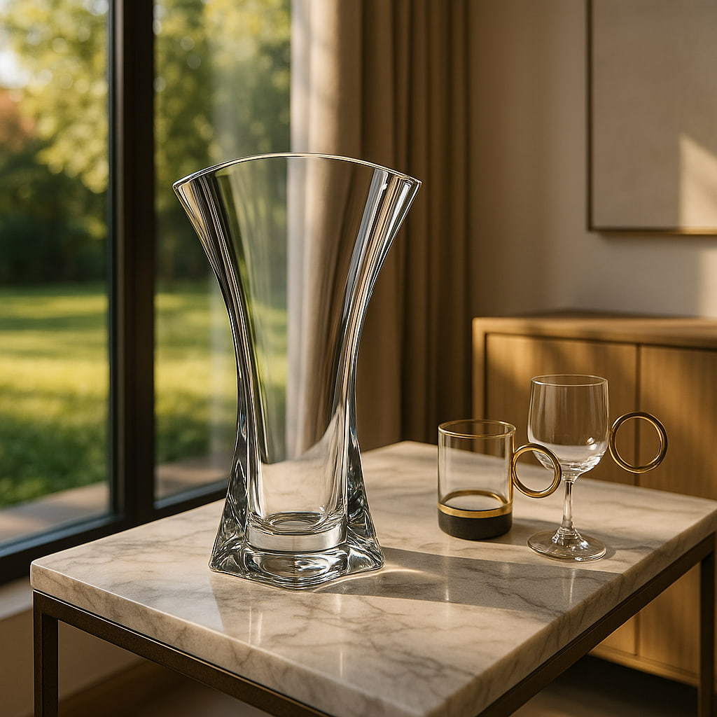 Прозрачное стекло без примесей делает вазу лёгкой на вид, а её стенки красиво отражают свет, создавая чистое и благородное сияние. Экохрусталь не содержит свинца, безопасен для здоровья, устойчив к повреждениям и прост в уходе. Такая ваза будет не только эстетичным, но и практичным выбором для дома или офиса.