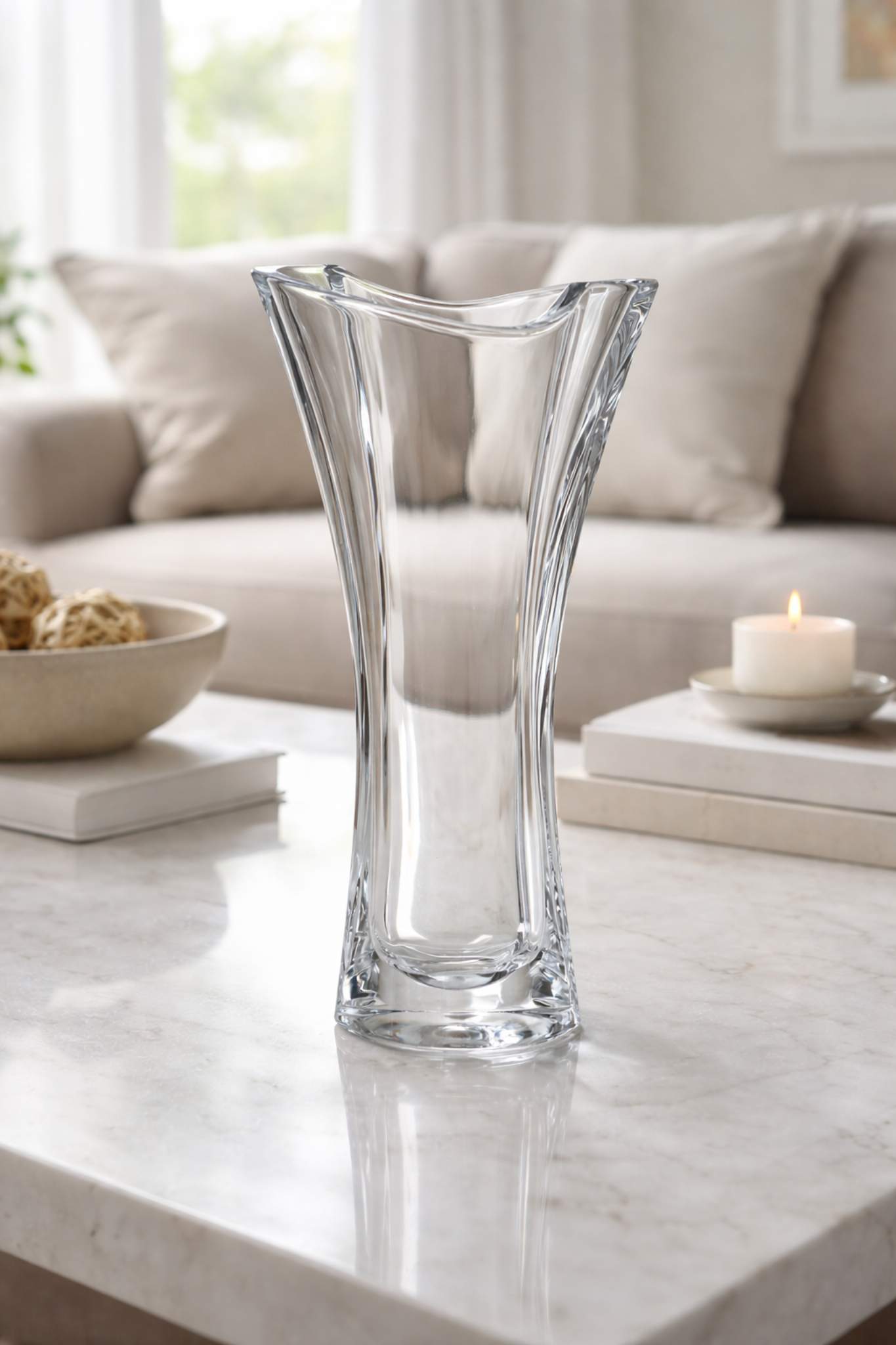 Коллекция Bohemia Smile — это гармоничное сочетание актуального дизайна и утончённой простоты. Прозрачное богемское стекло и мягкий волнообразный край каждой вазы или блюда создают ощущение лёгкости и движения. Изогнутая асимметрия напоминает лёгкую улыбку, благодаря чему коллекция получила своё название.
