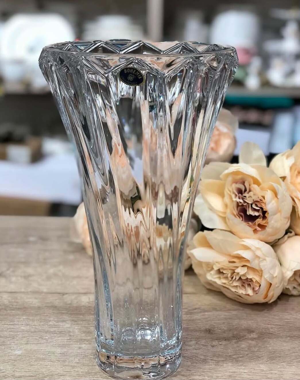 Ваза изготовлена из прочного чешского стекла премиум-класса — стойкого к царапинам, сохраняющего блеск и прозрачность на долгие годы. Чешское стекло – качество, которое проверено годами. Эта вещь – не просто посуда, а изысканная деталь вашего пространства, что говорить о вашей любви к гармонии.