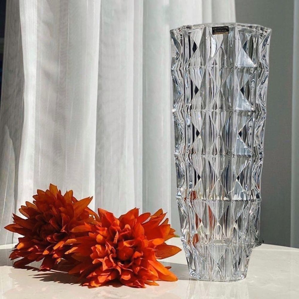Экохрустальные вазы Bohemia Diamond — это идеальное воплощение сдержанной роскоши и чешского качества. Благодаря геометрическому рельефу в виде огранённых ромбов, каждая ваза словно переливается светом, добавляя интерьеру глубину и игру бликов. Их элегантный, но выразительный дизайн одинаково уместен как в классическом интерьере, так и в современной минималистичной обстановке.