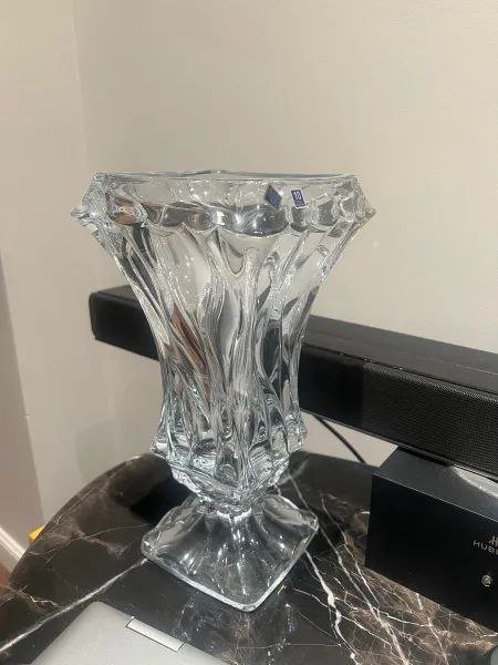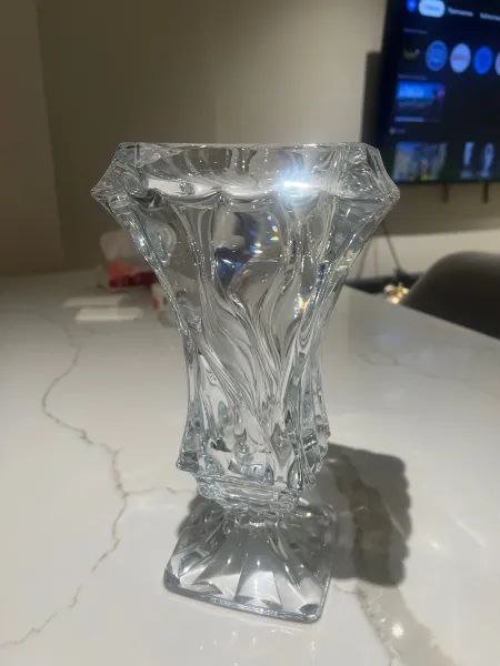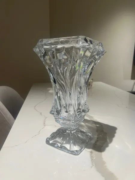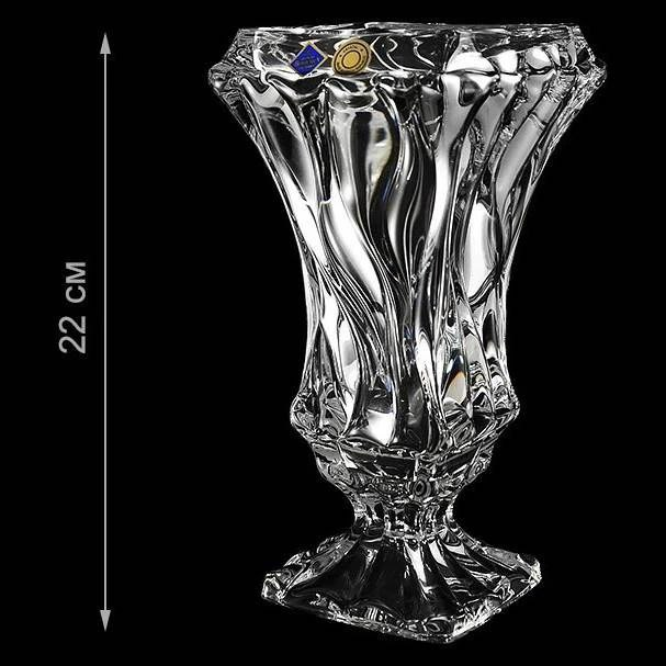 Высокая ножка придаёт вазе утончённость и делает её визуально легче, подчёркивая декоративный характер предмета. Эта форма идеально подходит как для живых букетов, так и для самостоятельного размещения — даже без наполнения ваза выглядит уверенно и стильно. Её строгая геометрия на фоне хрустальной прозрачности делает её универсальным элементом интерьера.