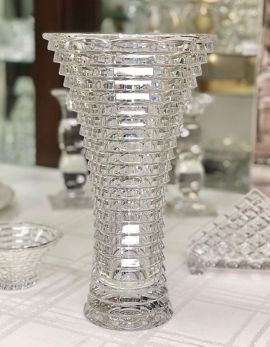 Хрустальная ваза Crystal Bohemia Blade — это настоящая скульптура из света и стекла. Её выразительная фактурная поверхность, словно выточенная лезвием, приковывает взгляд и играет бликами при каждом луче. Это не просто сосуд для цветов — это интерьерный объект, способный задать тон всей комнате.