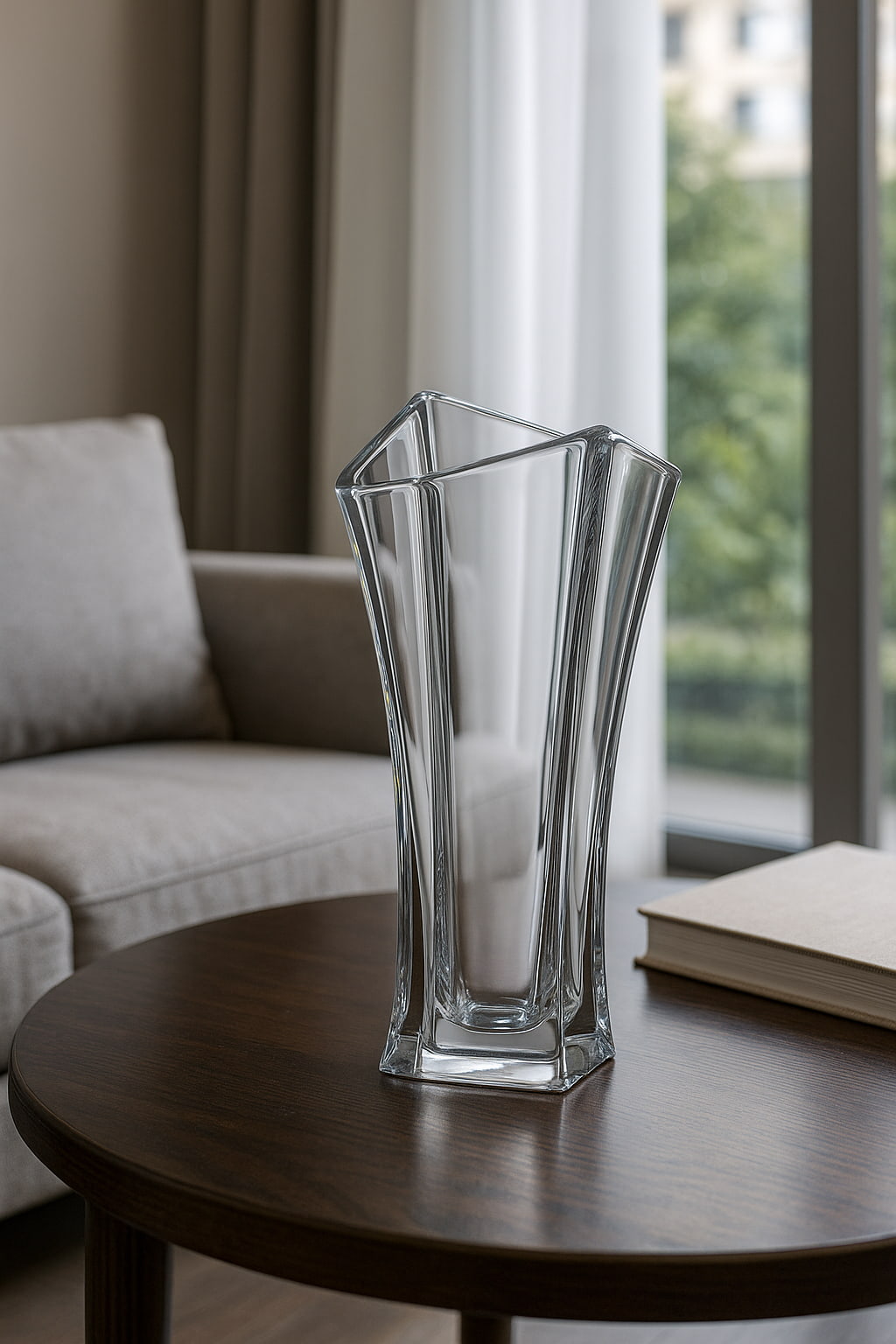 Чешское стекло здесь раскрывается особенно красиво: чистое, тяжёлое, с идеальной прозрачностью. В такой вазе цветы будто «стоят ровно», каждый стебель подчеркивается формой. Но даже без букета изделие впечатляет: пустая "Dynasty" может выполнять роль интерьерного объекта, создающего настроение и ритм пространства.