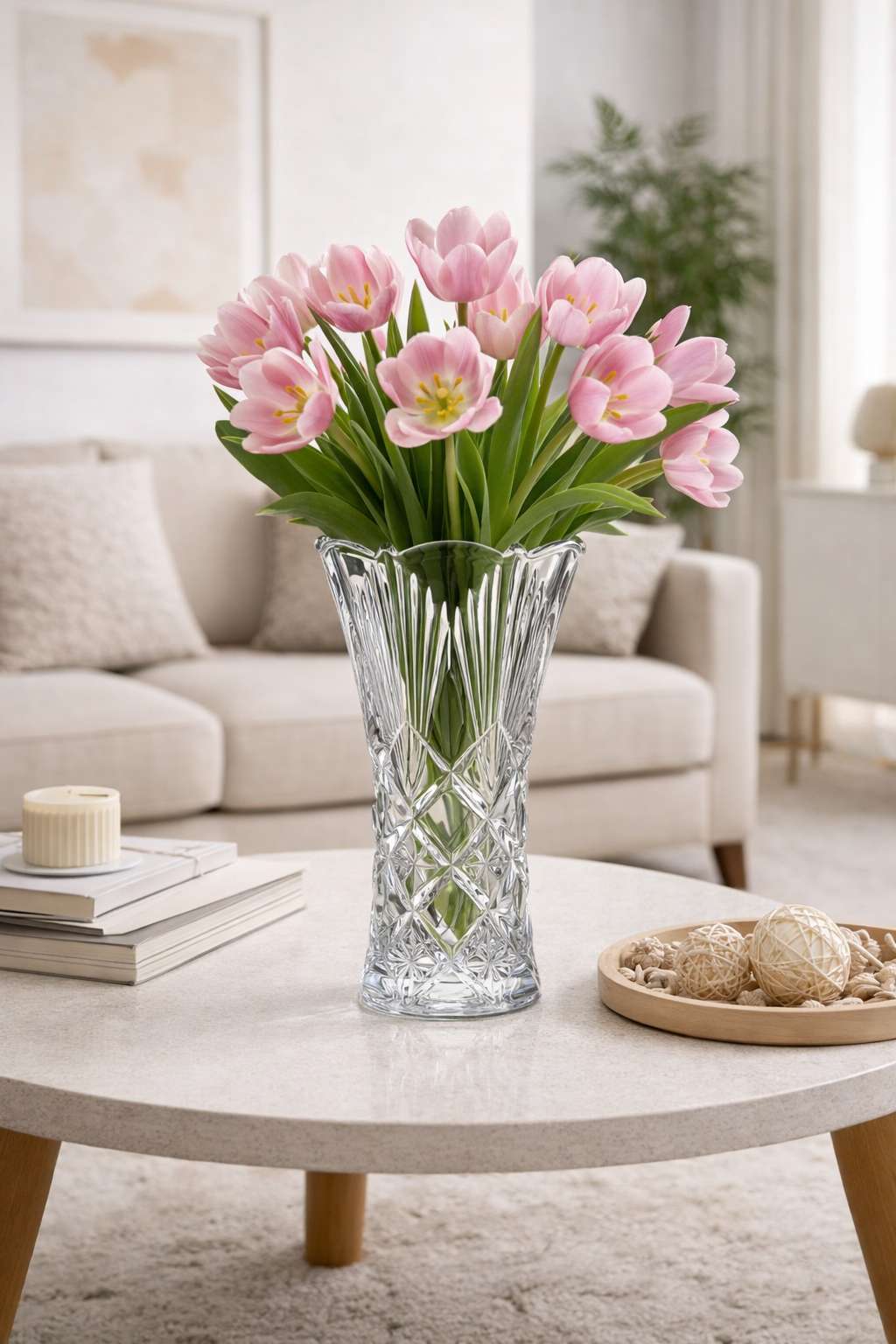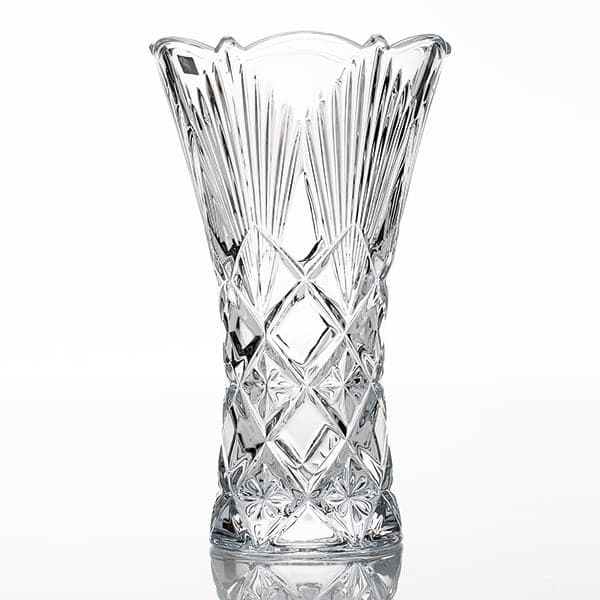 Ваза для цветов Лира из прессованного хрустального стекла с добавлением окиси титана и дополнительным обжигом края. Классическая форма и изысканное переплетение линий создают торжественное настроение. Стеклянный сосуд, идущий на расширение в верхней части, идеально подходит для лилий, ирисов и нарциссов. Прекрасный предмет из хрусталя гармонично дополнит интерьер, в классическом стиле.