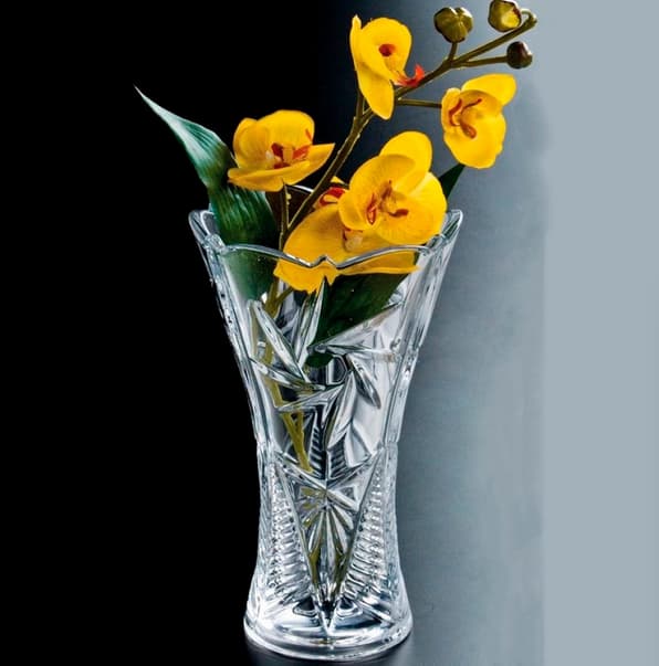 Роскошный узор в виде звезды, выполненный методом глубокой алмазной шлифовки, создаёт эффект объема и динамичной игры света. Каждая грань ловит лучи и отражает их, придавая вазе благородное сияние и подчёркивая точность линий.