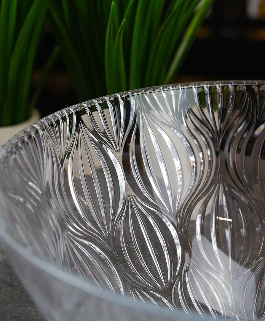 Уникальный рельефный узор коллекции, напоминающий форму луковичных лепестков, создает игру света и тени, делая каждый предмет произведением искусства.